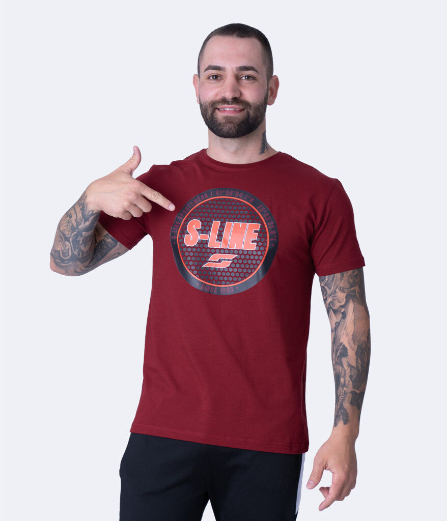 Мъжка памучна тениска S-LINE, цвят бордо